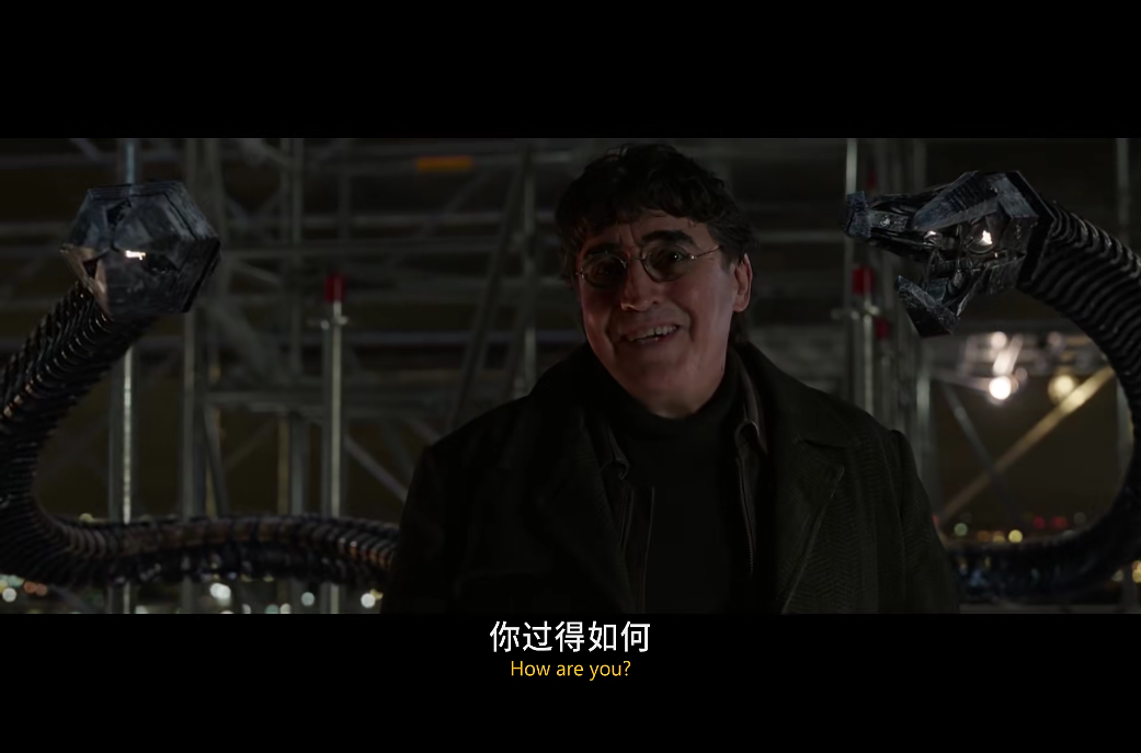 托比·马奎尔饰演的初代蜘蛛侠的死敌章鱼博士,被拉进了荷兰弟所在的平行宇宙,同时,已经40多岁的托比也被拉了进来,因为在章鱼博士的宇宙里,托比还是大学生,所以两者相见时,章鱼博士非常诧异,先说“你怎么这么老了?”