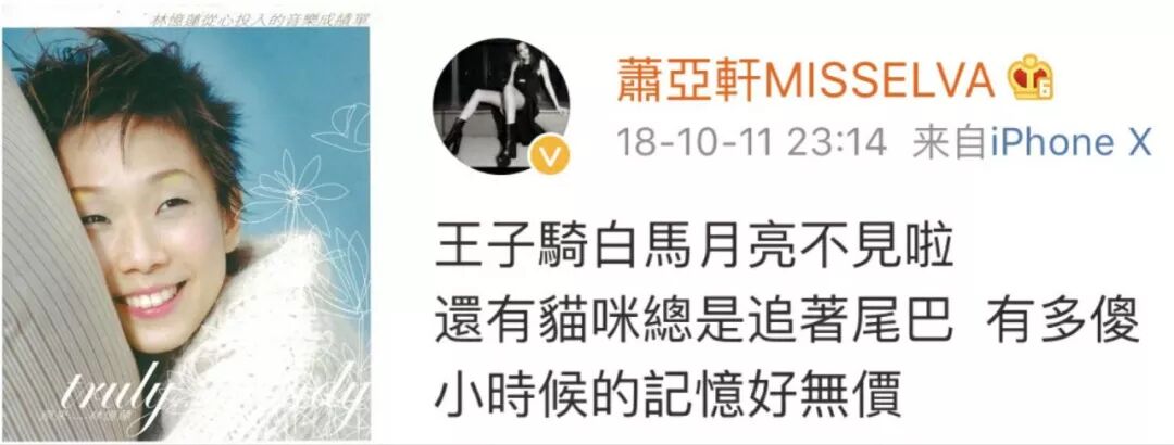 ▲ 歌坛“失踪人口”萧亚轩久不上社交网络,上次冒泡却po出了偶像林忆莲的《纸飞机》歌词,可见小寒与忆莲的合作多深入人心,另外,忆莲名曲《词不达意》也是小寒的作品哦。