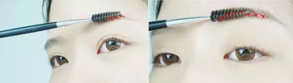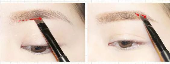 Step1:将笔竖直紧贴鼻翼,向上延长线即为眉头应在的起点位置 Step2:在鼻翼和眼球中央的延长线与眉毛的交接点,以此作为“流星”需要柔缓下垂的位置起点 Step3:依旧保持笔头紧贴鼻翼,鼻翼、眼尾的延长线与下落眉毛的交点即为流星眉结束的位置。 第二步:眉刀眉刷来助力,营造自然不杂乱的眉形 第三步:用眉粉刷轻轻的描绘流星眉前端 第四步:下段眉毛斜向下画,打造轻缓流星眉