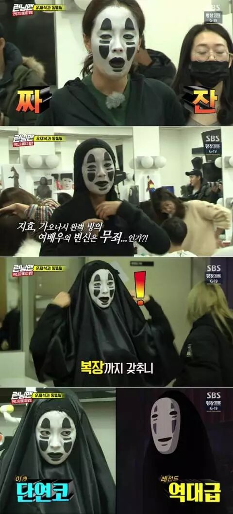 上一期的对决中,刘在石战胜了所有成员拿到了Running man片头的创意剧本主导权,而在接下去的一段时间内,Running man都将启用这一个版本的片头进行播出,刘在石的创意剧本为《刘在石与动物们》除了刘在石一个人,其他成员都需要进行变装成为动物,特别是梁世赞在创意的时候,刘在石就已经有了绝佳的鲇鱼创意,李光洙继续成为长颈鹿,HAHA则变成了咒怨中的小男孩俊雄,池石镇为乞丐,智孝成为了无脸男,而全昭旻则成为了一只站在木棍上的鹦鹉,老虎金钟国成了温顺的猫咪。