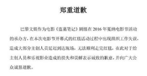后来搞清楚才知道,《盗墓笔记》剧组主创集体“失踪”居然是因为戛纳活动承办方的失误,导致井柏然等错失戛纳红毯,随后承办方对此公开致歉。
