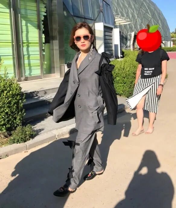 真的是没想到她穿上黑色的西装,能够有这样好的气质,再加上她自己本人也不是太胖,所以穿上这件黑色的西装之后,显得非常的瘦小,加上她皮肤也是比较白嫩,所以看起来有点像霸道女总裁的感觉。
