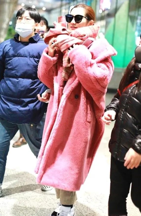 这件长款粉色的外套穿在她身上不仅没有显得非常的笨重,还显得很舒服自然,这大概就是她自己骨架子的原因吧,能够撑得起这件衣服,也是凭借她自己五官端正。才能把这件衣服撑起来,其实这件衣服的设计感也是非常普通的,全是靠她的颜值。