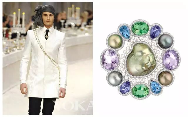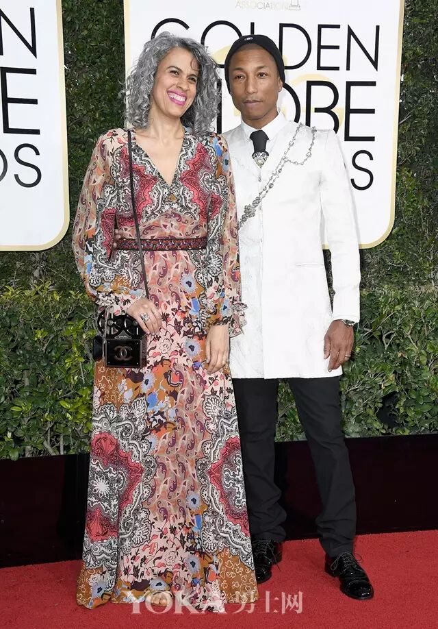 潮男Pharrell Williams是香奈儿形象大使,此次出席金球奖身着CHANEL 2012“巴黎-孟买”高级手工坊系列:白色西装,斜肩项链(款式68), 搭配CHANEL高级珠宝Perles Baroques白18K金胸针, 只有时尚品味超群的男士才敢这么穿吧,但是这一身打扮确实很惊艳。