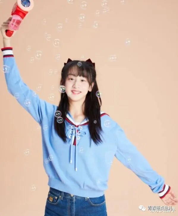 她身穿天蓝色休闲卫衣,搭配牛仔短裤,打扮得十分休闲,看上去少女感满满。在拍照的时候,开心地对着镜头伸出“14”的数字,表示自己已经14岁了。另外,她还拿着泡泡机,随意的转着圈圈,看上去可爱又活泼,元气十足。