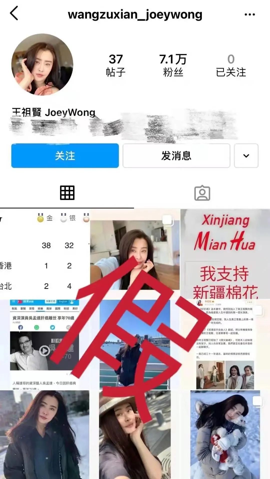 原来,王祖贤的这个社交账号其实是个冒牌货。据粉丝会介绍,该账号长期以来一直在盗取王祖贤的信息、图片、动态,并上传到外网,假冒女神来获取网友的关注,粉丝数超过了7万,很容易让人误以为真。
