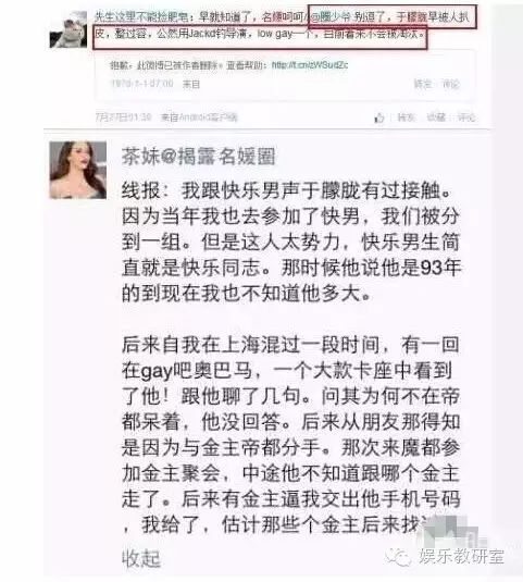 再加上之前和蔡康永的合作,一时“同性恋”这一传言也是沸沸扬扬,更有某位网友在微博上发布了一篇微文,配字配图也是耐人寻味