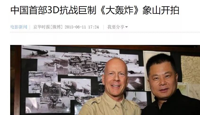 实际上,在2015年6月,布鲁斯·威利来到中国时,《大轰炸》的投资已经停止了多次。萧峰说,当时剧组只剩下1.5万元人民币,连布鲁斯.威利斯入住酒店的定金都付不了。