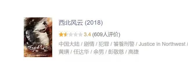 说的是电影《西北风云》,刚上映不久,影帝任达华和影后余男主演,豆瓣评分3.4。