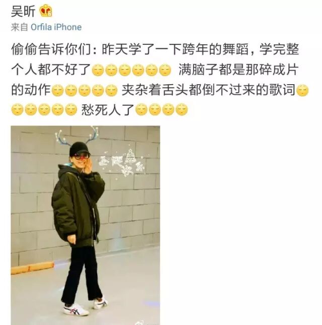 要知道晚会前几天吴昕还在微博上抱怨自己跨年舞蹈太难了呢,嘴上抱怨着,但感觉她心里是高兴的。