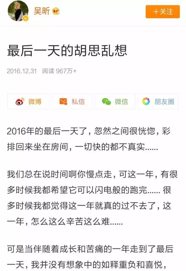 2016年已经过去了,希望吴昕和大家在2017都能顺利!