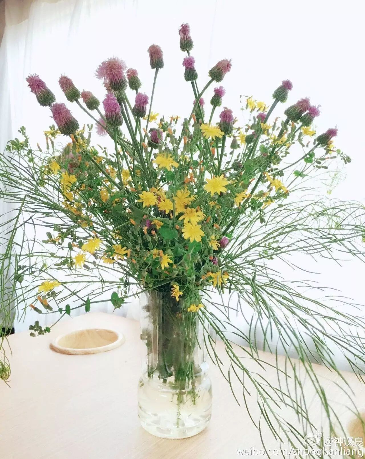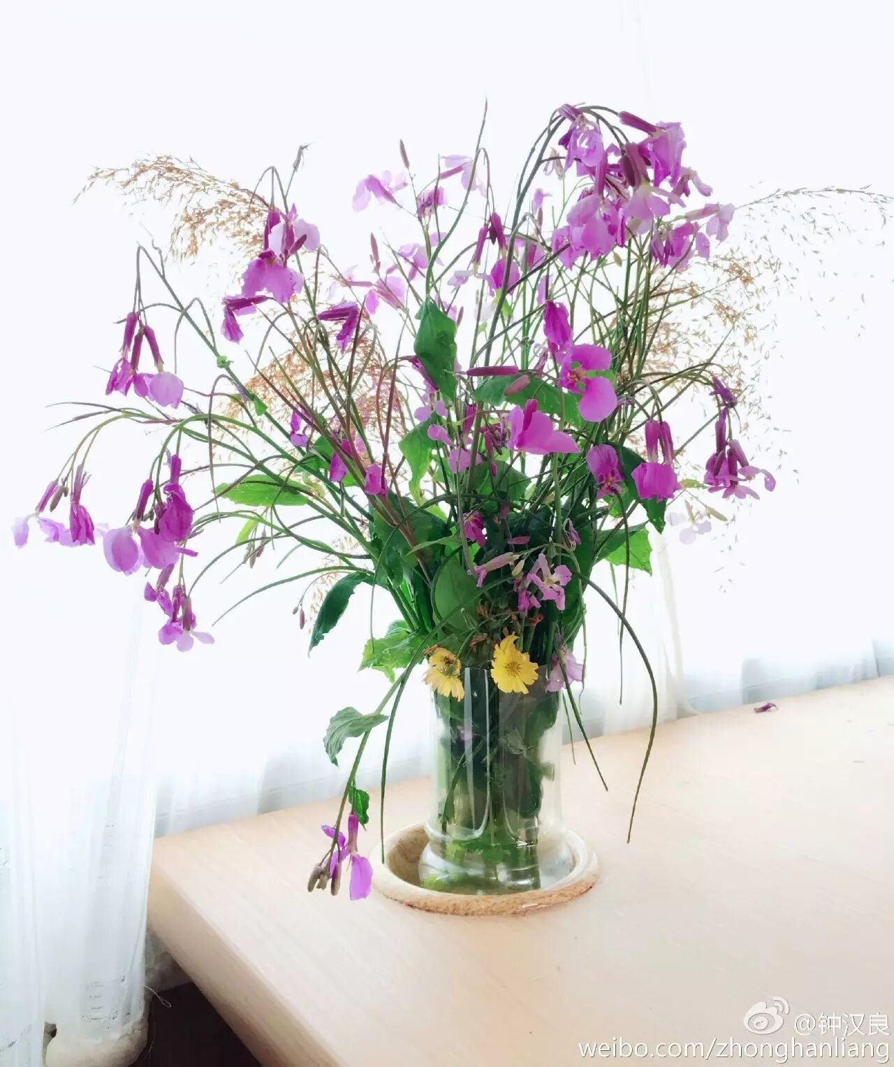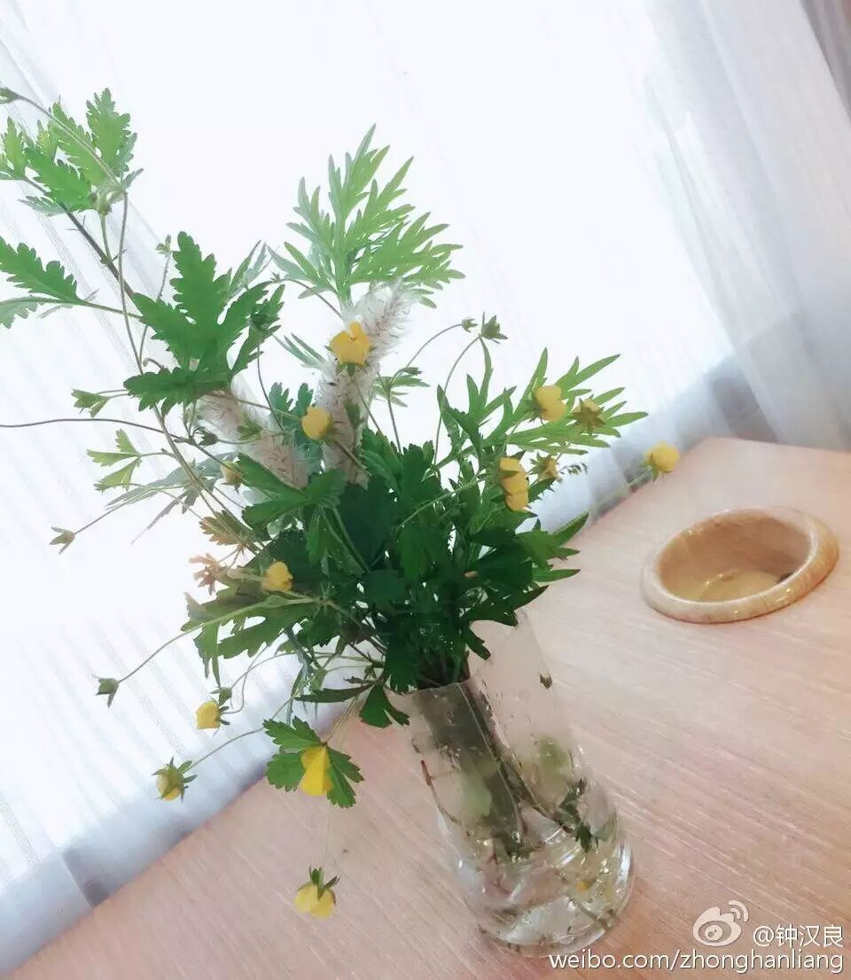 钟汉良说自己每天拍戏前,迎接自己的都是小花小草,心情也因为它们变得很好。图片里的花束,都是司机大哥沿着公路,在荒野间找到,随心情凭直觉扎成一束束,偶尔会研究。。。
