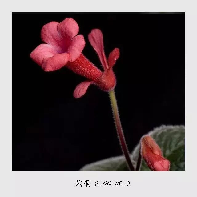 岩桐有一茎一萼,花形奇特,花冠长筒形,花瓣肥厚,又名落雪尼。摸起来有丝绒感,色彩艳丽,花色有橘、白、粉紅、紫等。迷你岩桐的花期几近全年,但以春、秋两季最盛。