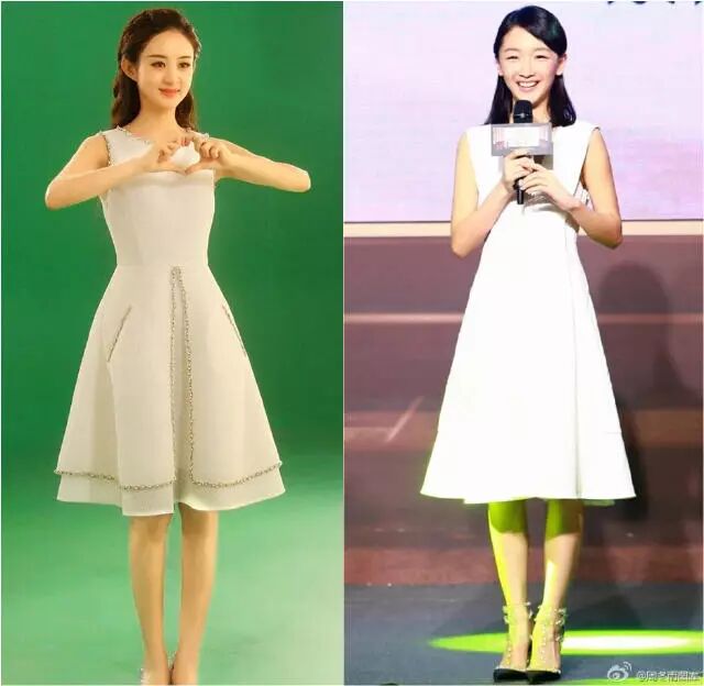 小白裙都穿很小清新范儿,但是周冬雨选择裙子的长度过膝反而显得腿很短,赵丽颖选择刚好及膝的长度,优雅得体。
