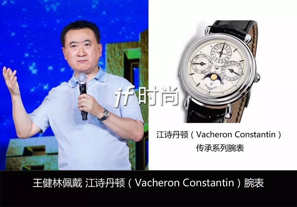 当然啦,当王健林驾到,尔等凡人速速退让吧。作为万达集团董事长,“国民公公”佩戴的是一款583万的江诗丹顿(Vacheron Constantin)腕表。江诗丹顿是世界三大名表品牌之一,这款传承系列30020/000P-7596腕表具有万年历和月相功能,可以显示当前的日期、星期和月份,对日理万机的董事长来说最实用了。