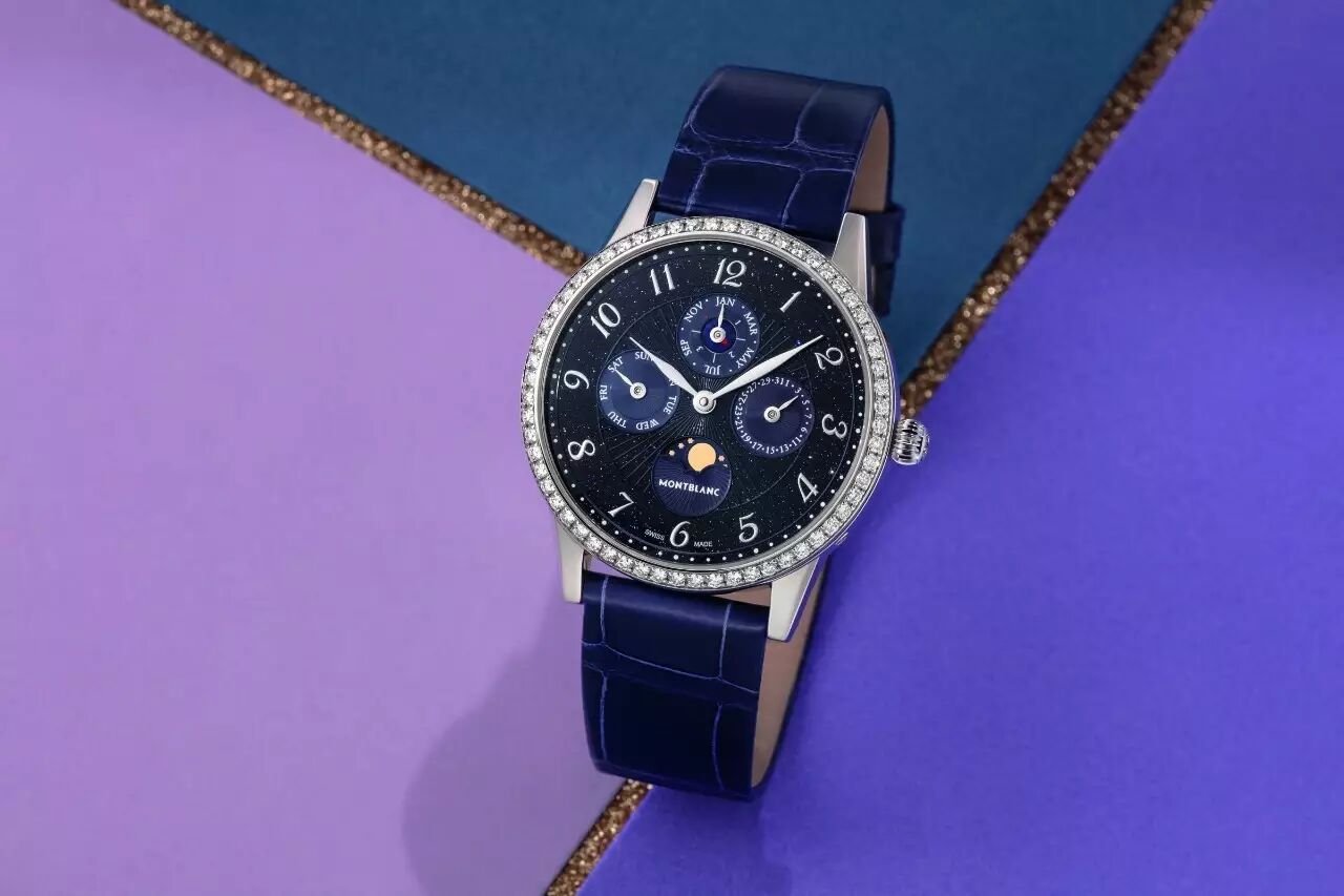 桂纶镁特别喜欢其中这款宝蓝色表盘的万年历珠宝腕表,戴上去参加晚宴或者出门度假都很好搭哟~