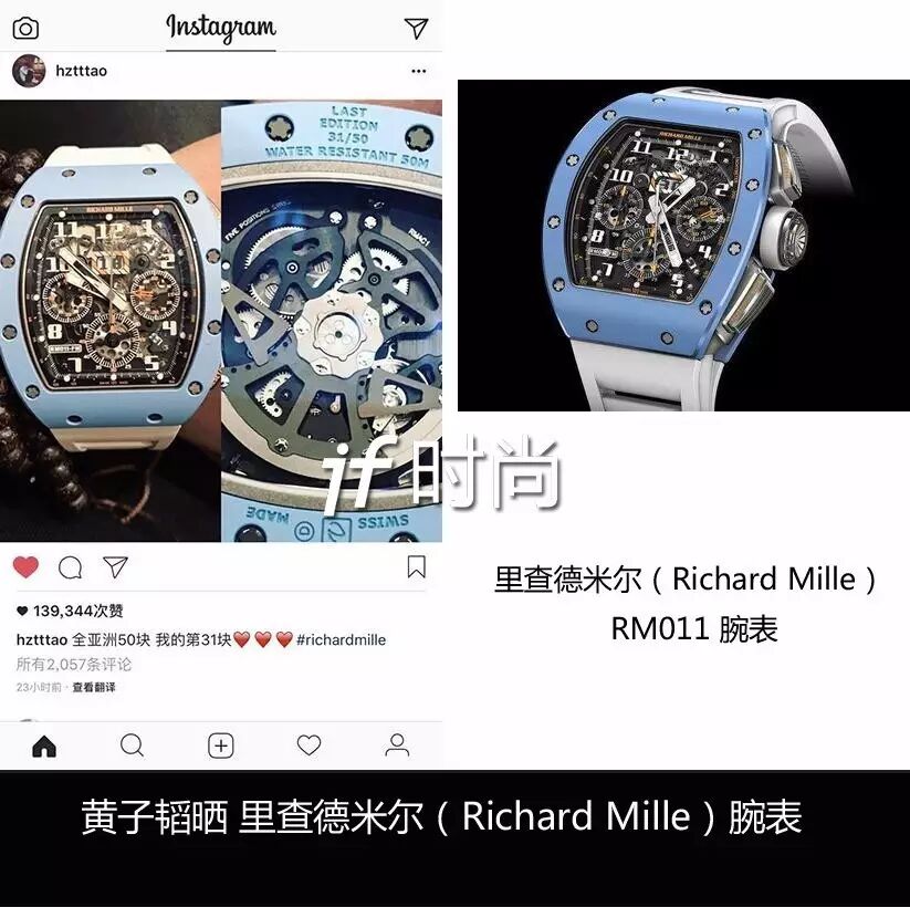 Wuli韬韬身为200亿家产的继承人,口袋里几亿的零花钱也用在了买表上。他同样坐拥好几支里查德米尔(Richard Mille),上星期刚高调晒过一支价格100万左右的RM011,还一脸骄傲地说“全亚洲50块,我的第31块”。