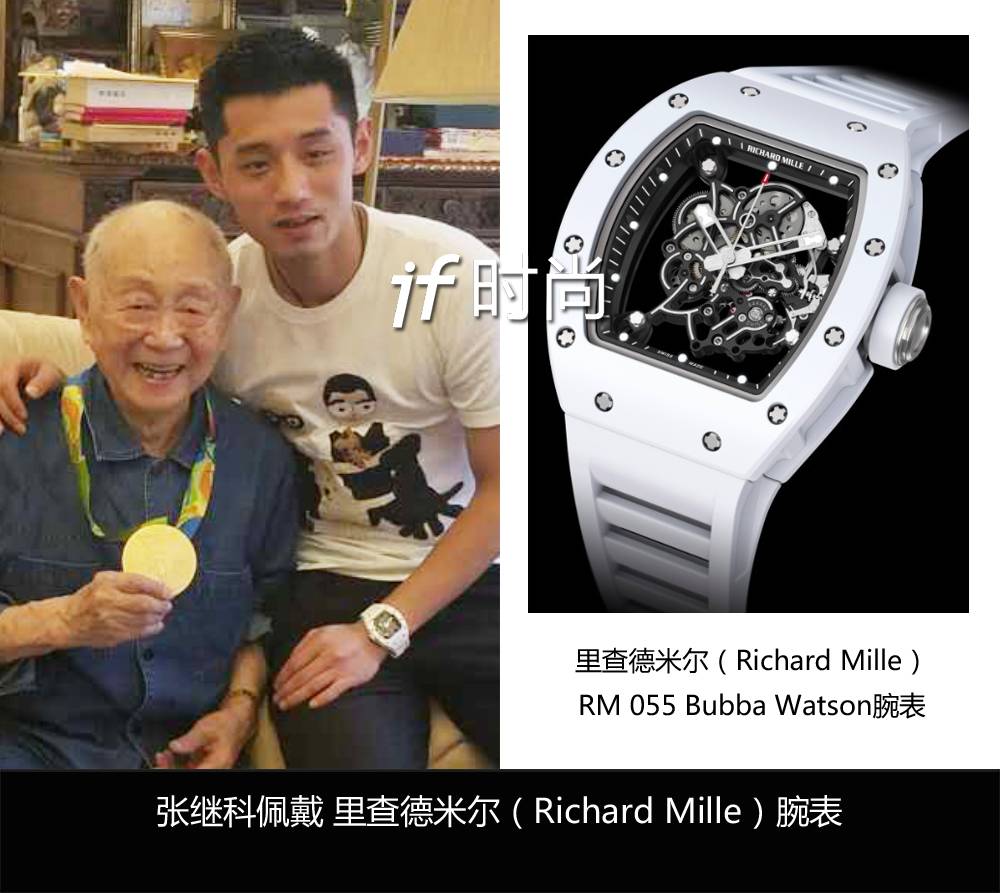 张继科有黑白2款里查德米尔(Richard Mille)RM 055 Bubba Watson腕表,每支价格在六七十万左右,两支妥妥的上百万。