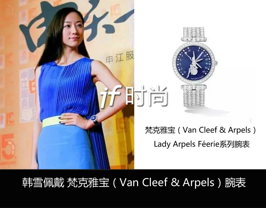 韩雪也是爱表一族,最爱的名表品牌之一是梵克雅宝(Van Cleef & Arpels),这款Lady Arpels Féerie系列的腕表表盘很独特,国内专柜大概100万上下,国外VIP折扣也要80多万。