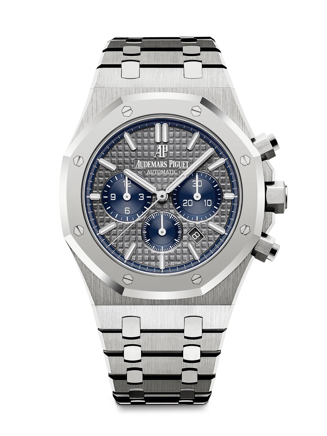 全新皇家橡树系列计时码有7款腕表,均采用清新的双色表盘设计。与以往相比,3点和9点位置的计时副表盘尺寸加大,再加上全新荧光涂层,大大提高了读数的清晰度。
