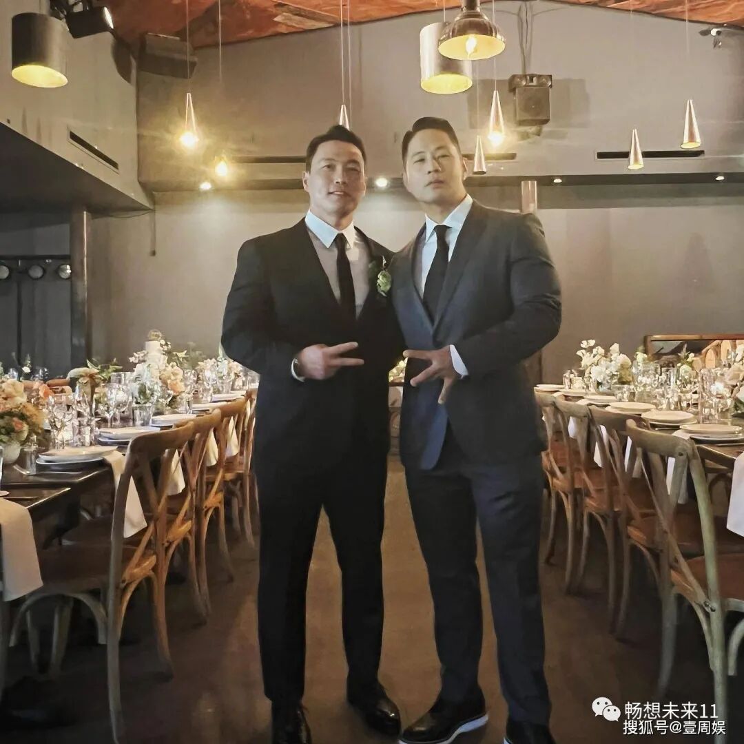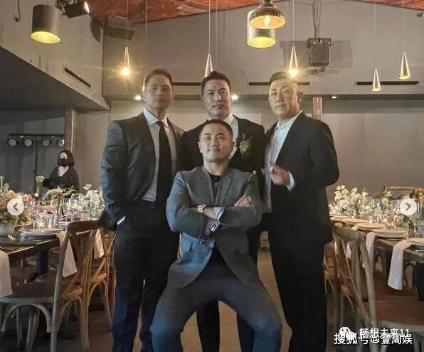 不得不说,刘承俊穿正装真的很帅气,而且西装的款式跟颜色都非常有品味,他在婚礼现场也跟朋友拍了不少的合影,看起来心情很是不错,精神也特别好。