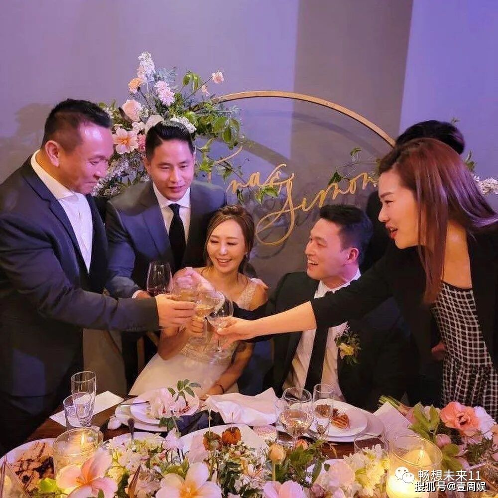 当天的刘承俊穿着非常正式,无论是着装还是发型,一看就是精心准备过似的,西装革履上阵,看起来格外的绅士,而且也看不出来他有45岁了。刘承俊围着新郎新娘身边,跟他们一起碰杯,笑容十分灿烂。