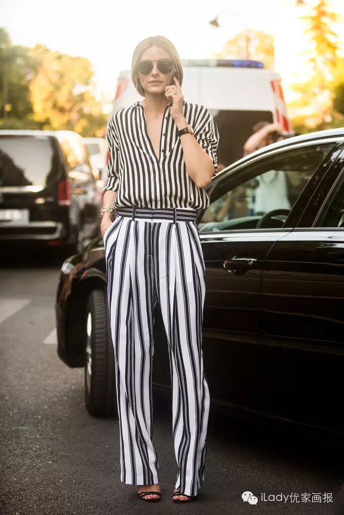 不同样式竖条纹的结合,加之宽松的上衣与飘荡的阔腿裤,“没腰星”人漂亮地打了个翻身仗。