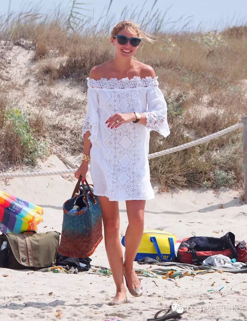 O小姐的海滩照,大多以套着罩衫为主,而宽松的款式恰好能掩盖她的平板身材,又能营造女神之感。所以姑娘们呐,没有如维密天使们的完美身材又如何?照样也能通过衣服来“伪装”嘛~