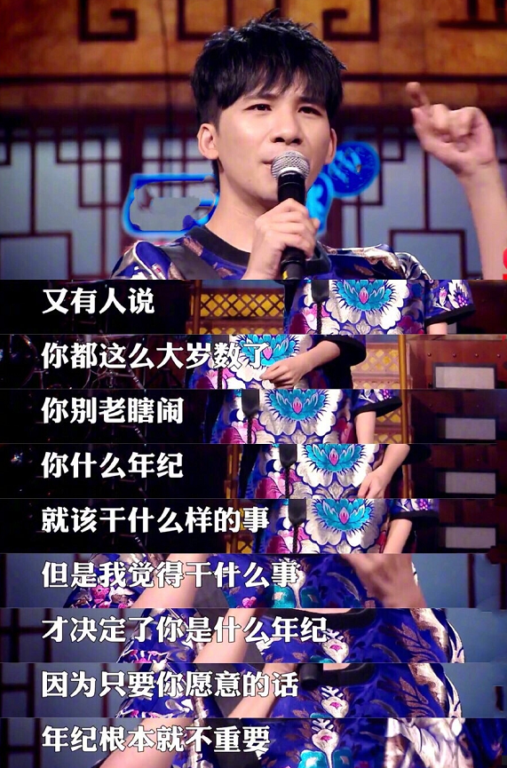 对于什么年纪就该的言论,他反驳:干什么事,才决定你是什么年纪。