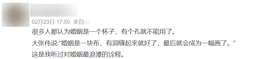 在一众毁誉参半的已婚明星中,大张伟就这样用最吊儿郎当的语气,说着最清醒的话,成了网友心中的“已婚明星之光”。
