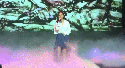 今天的靓颖可以说是非常漂亮了。上身搭配蝙蝠袖衬衫下身藏蓝色不对称百褶裙(井妹儿属于FASHON描述无能者,反正就是好看就对了~)。当女神从台下走上舞台的那一刻,井妹儿觉得:啊...陷入爱情了...