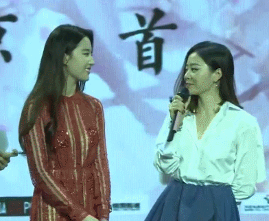 井姐说她有去电影拍摄的现场探班,主持人借机问井姐“那在拍电影时的刘亦菲和平时的刘亦菲有什么不同呀?”