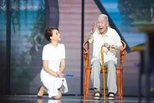 《开学第一课》里,董卿三次下跪采访96岁高龄的翻译家许渊冲老先生,与老先生谈笑风生,