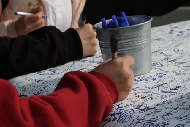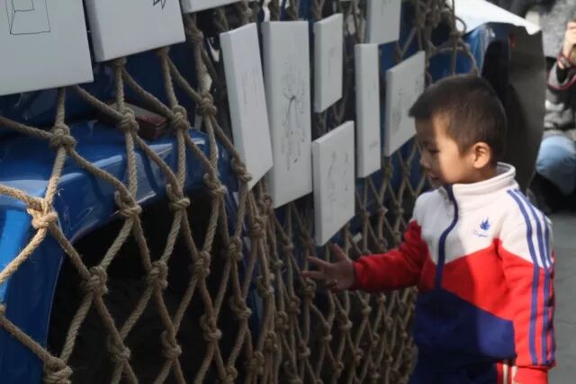 小朋友多认真的在看着画,签着名呀~