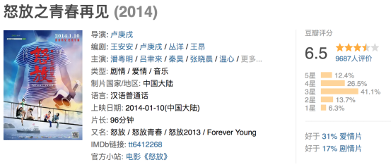 另外,卢庚戌还效仿高晓松,拍摄了水木年华歌曲IP电影《一生有你》和《怒放之青春再见》,豆瓣一个6.5分,一个4分。