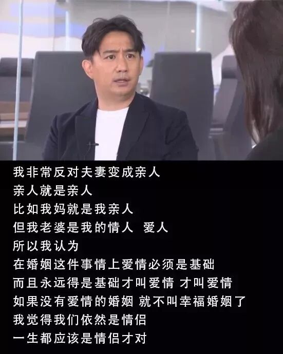 我非常反对夫妻变成亲人,我妈、我女儿是我的亲人,但我老婆永远是我的情人、爱人。