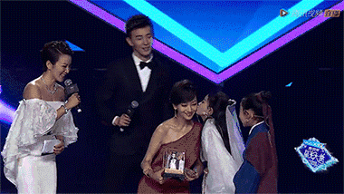 王嘉尔领奖后感谢了一圈人,蓝后开始敬业地替vivo打广告。虽然普通话不好,但重在参与啊!!!他说了好几遍,还抱着男主持要“照亮你的美”……