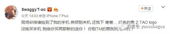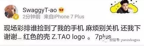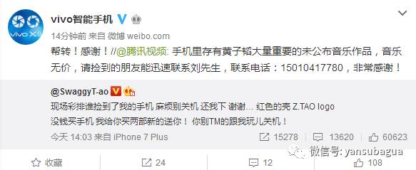 他是去参加vivo X9腾讯视频星光大赏,还在彩排的时候,就发现手机丢了。