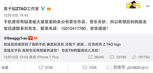 工作室的人也帮忙转发,给出了工作人员联系方式,说黄子韬手机里有很多未公布音乐作品。