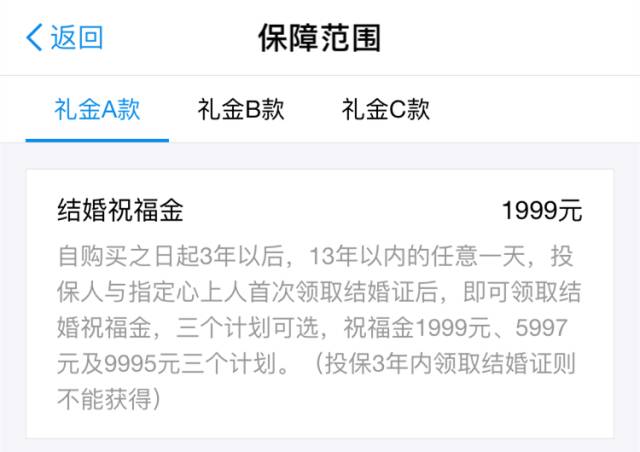 那么投保人可分别获赔1999元、5997元和9995元的礼金!