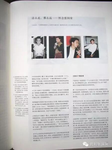 这么近,那么远 —— 怀念张国荣 黄丽玲 28岁的张国荣,攀上了事业的高峰,正在为他的第一个个人演唱会作准备,当时我问他:“打算在幕前做到什么时候?”他说:“还不知道,但肯定会急流勇退,绝不会做到阿叔阿伯模样仍然站在幕前。青春对我是很重要的,而上天在这方面特别优待我。”