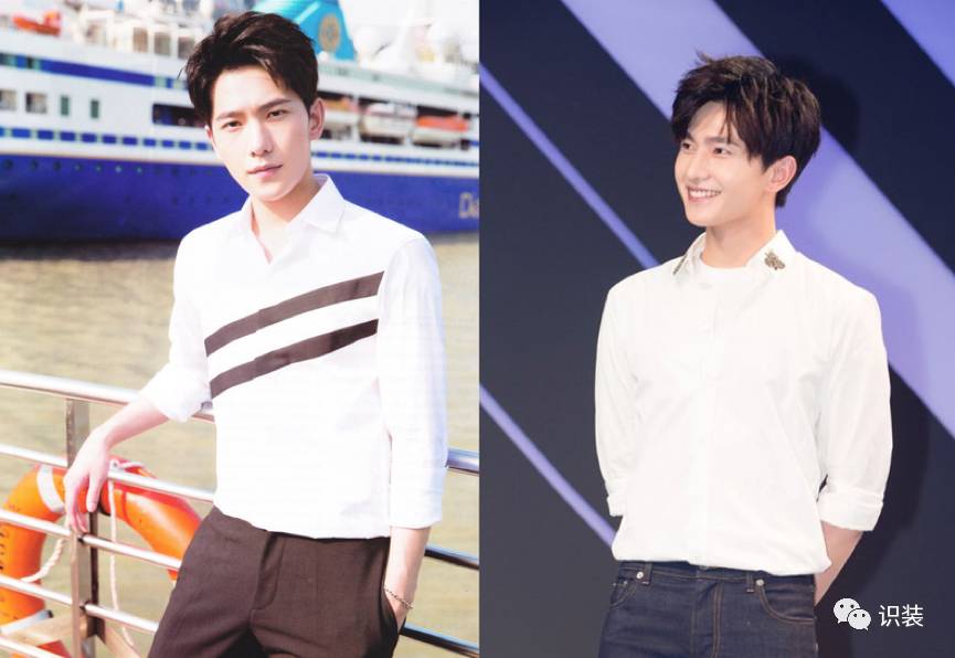 可以像杨洋这样考虑一些带有简单花纹装饰的衬衣单品