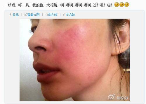 李冰冰也在微博上晒过自己的过敏的大花脸丑照 ↓↓↓