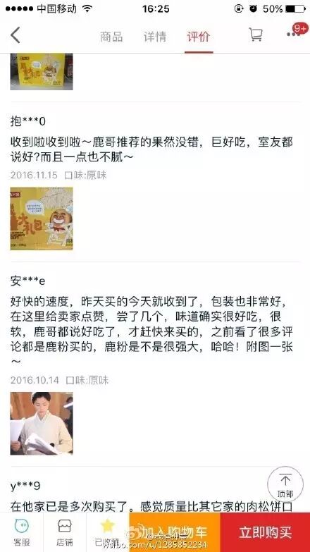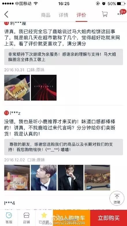 鹿晗在节目中说某牌子的肉松饼巨好吃。