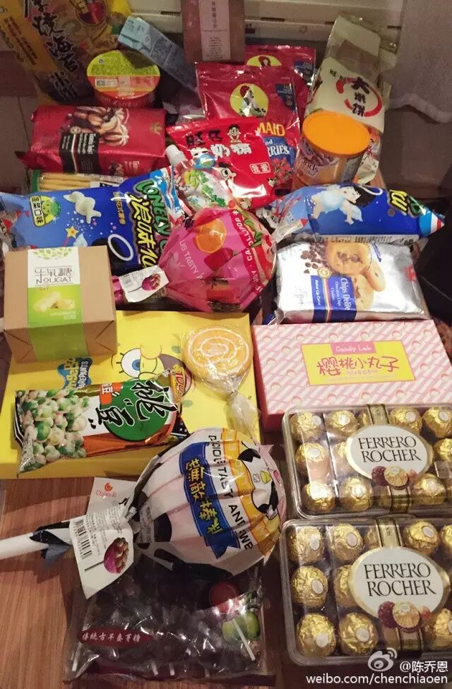 陈乔恩的零食宝贝们啊,海苔、米饼、牛奶糖、浪味仙、饼干、超大棒棒糖、巧克力……