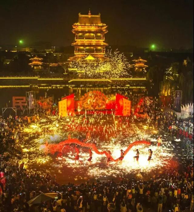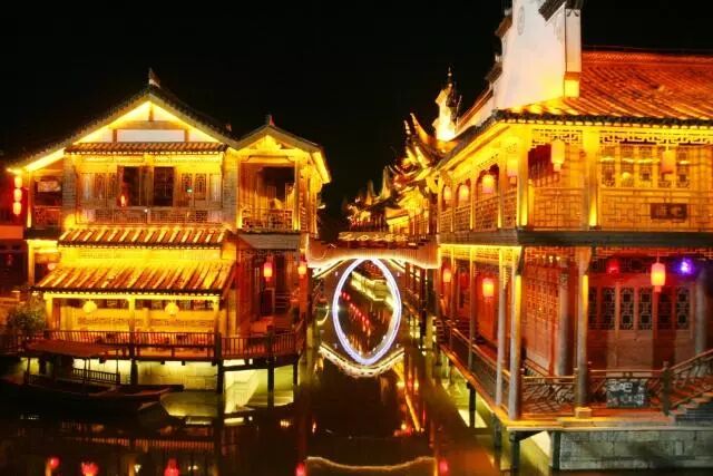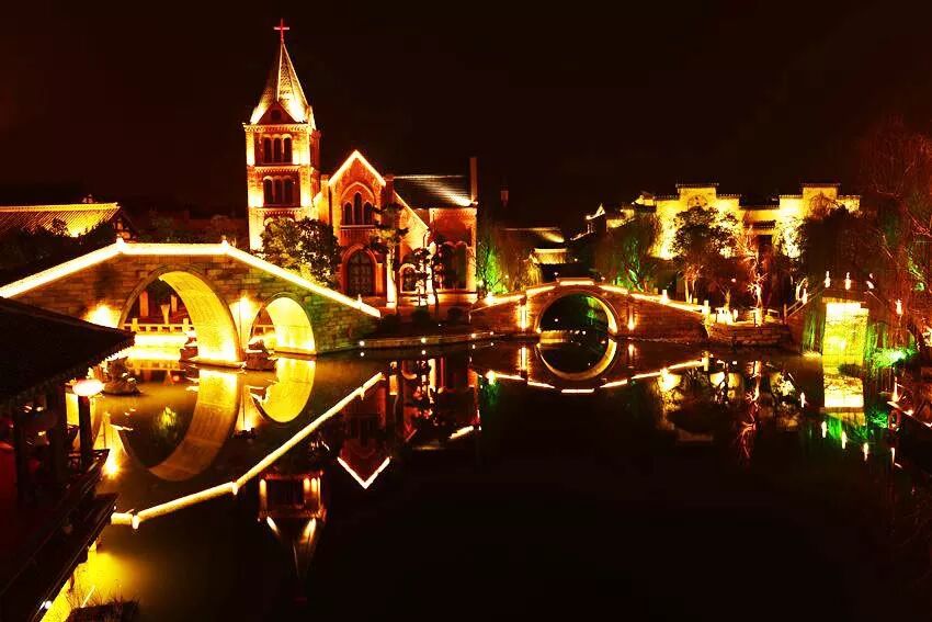 白色落下,梦幻的古城夜景映衬着万盏的彩灯,颜色更加鲜亮;一河渔火 ,歌声十里,沉醉在月色与灯火中的台儿庄古城久久不愿醒来。