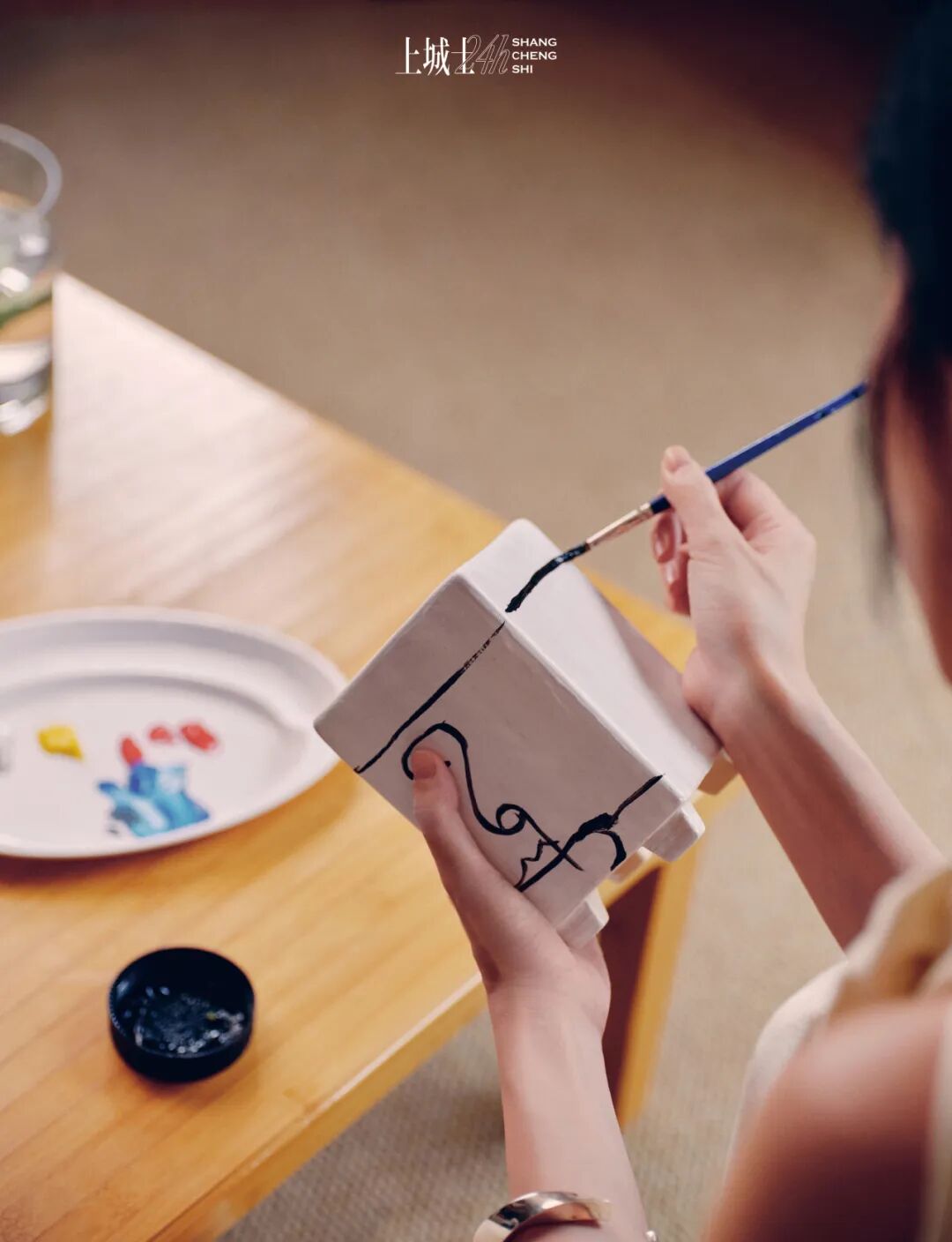 当杨谨华拿起画笔,在环保瓶子上勾勒出几何线条的轮廓时,周围的一切是安静的。她一直喜欢看画和艺术品,但对于提笔这件事是在几年前才开始的,她试着在家画一些水彩画,她喜欢用热烈而温柔的色彩去表达随时想到的一些事物,星星、大海、苹果或石头,落在纸面上,思想和实物被串联起来。