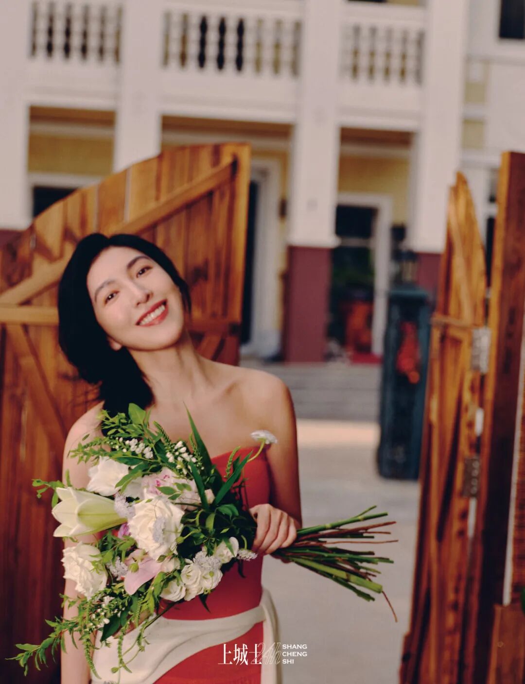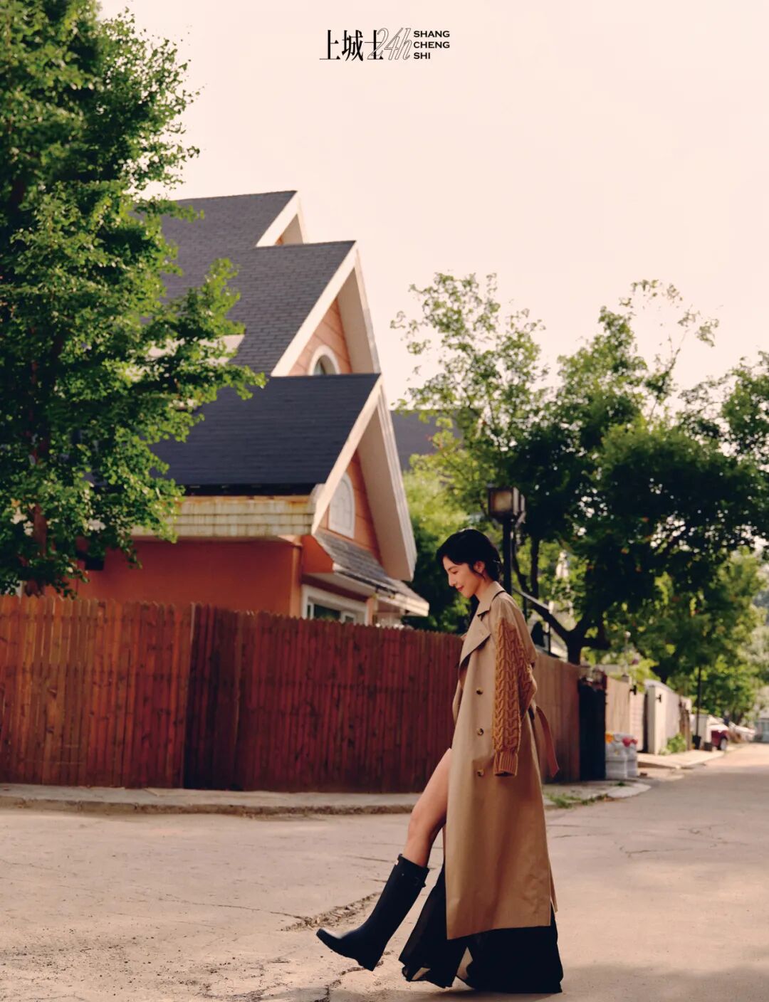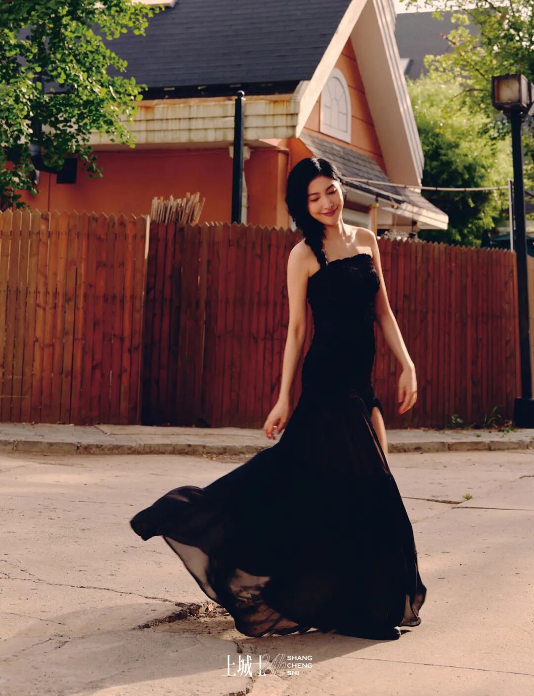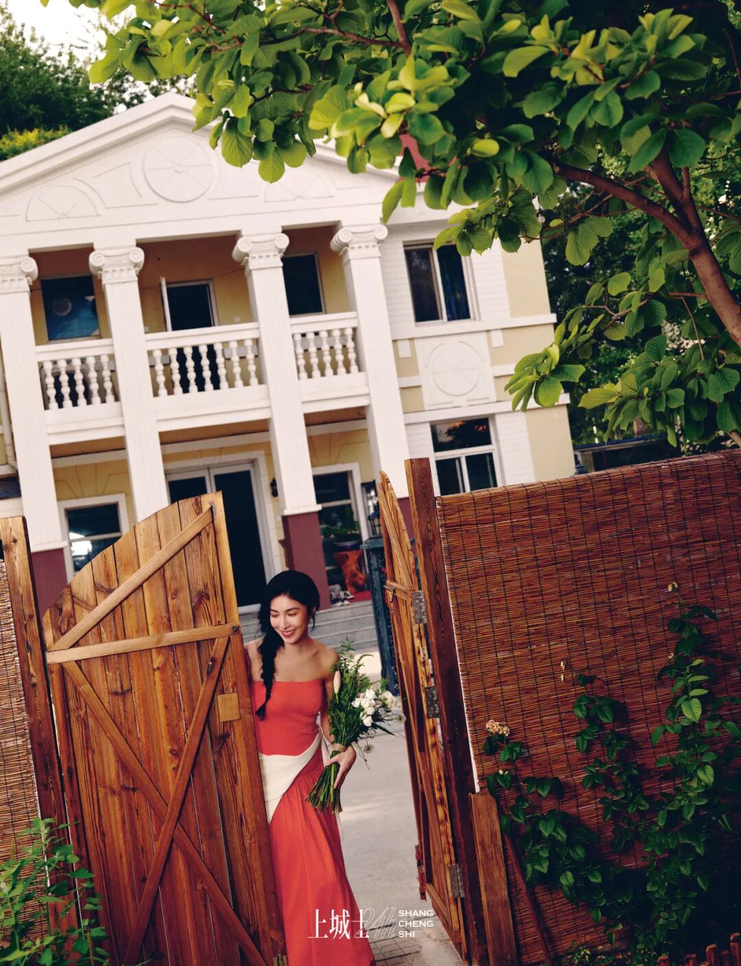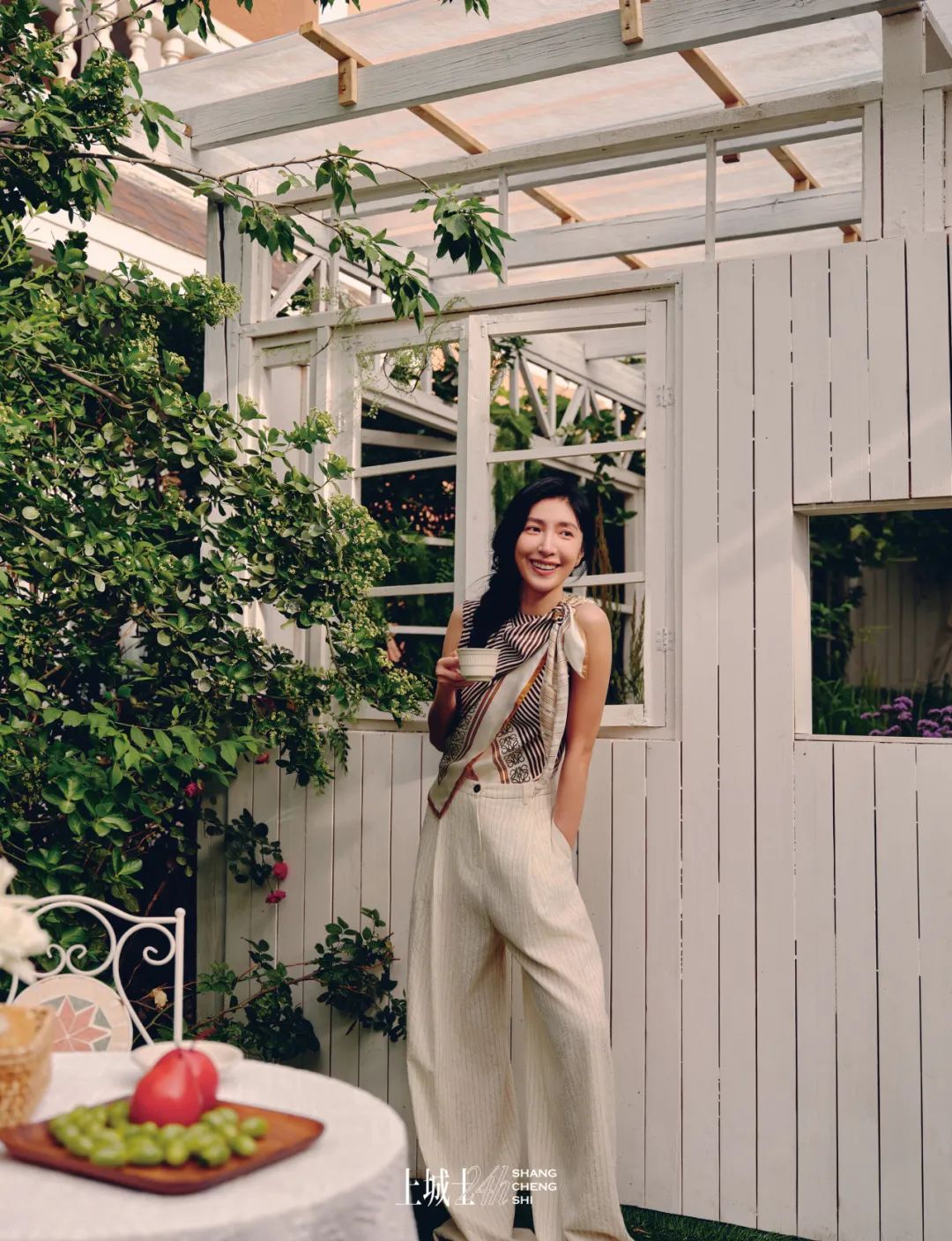 拍摄从户外场景开始,杨谨华坐在秋千上轻轻荡悠,抬头的间隙,偶尔在周围忙碌的人中瞥到经纪人或者其他工作伙伴,会眨眨眼睛或会心一笑,她有一个氛围极其融洽的工作团队,彼此之间的默契透露着她的细腻与友善。结束时,她会在摄影师的电脑屏幕上迅速回看一遍照片效果,但不会对选片或者其他提出什么意见,她对工作伙伴们向来信任。