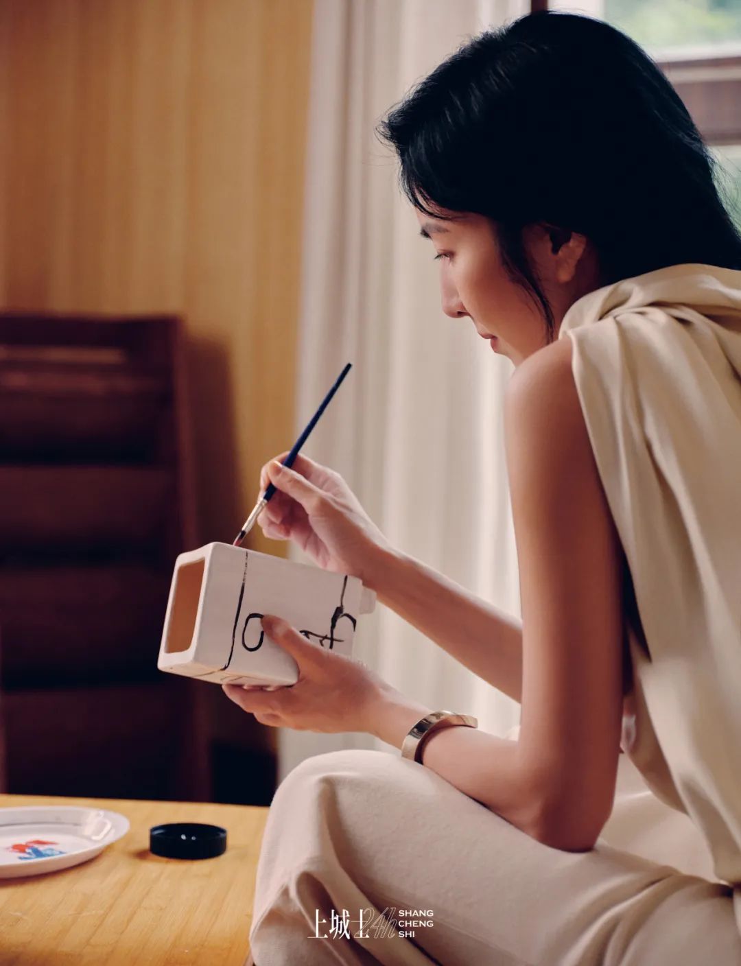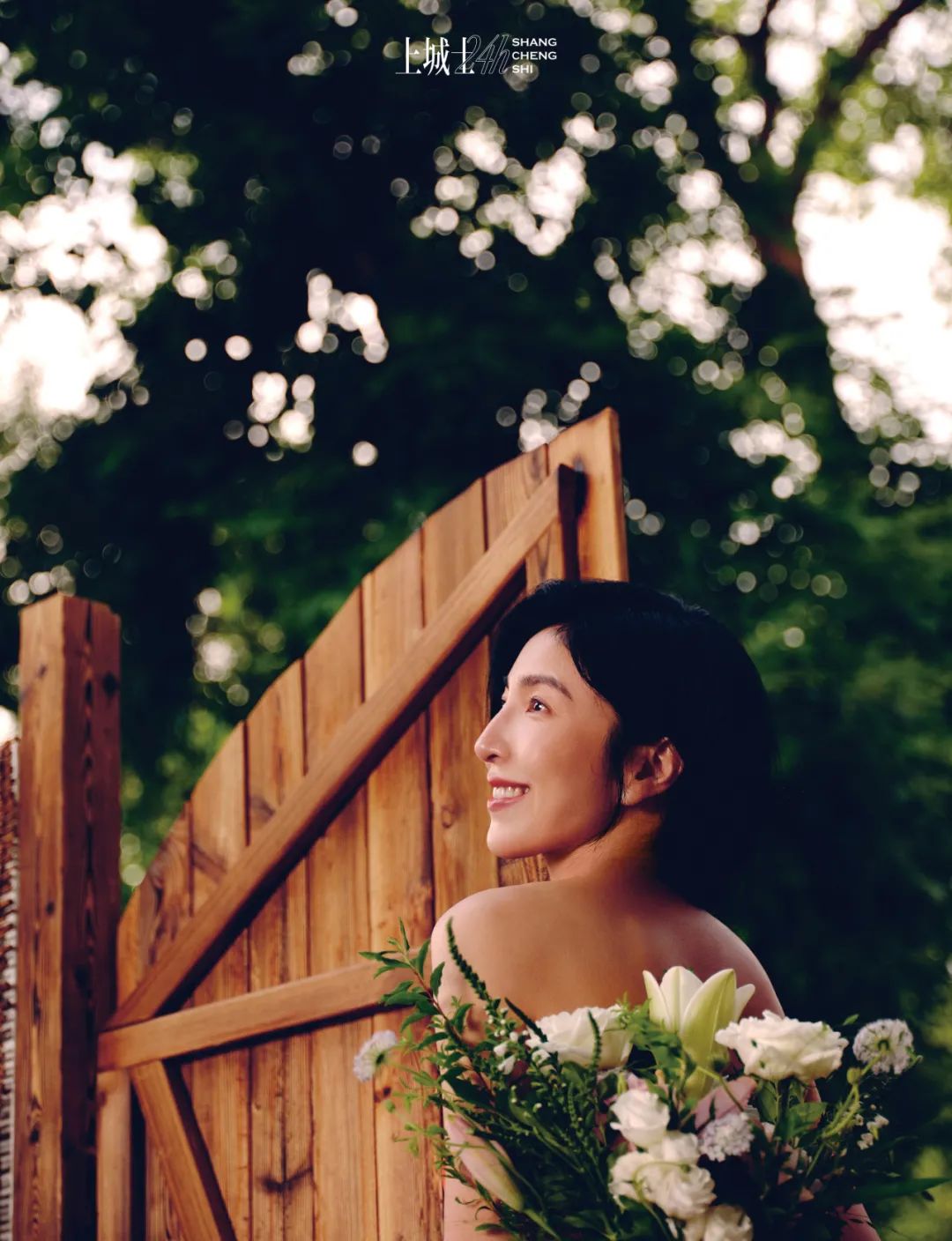 这种真挚是一种无法矫饰的面貌,它流露在一个人的日常细节中。在我们采访的中途,窗外忽然天色骤变,坚挺的树干被巨风吹得摇摇晃晃,雷声与闪电交加,引来工作人员的惊呼和感慨。她却像是没有注意到这些巨变和干扰,没有扭头看向窗外一眼,一字一句地继续回答着采访问题,回答完问题,她安抚着,“没关系,我们刚好可以慢慢聊。”,又或是在路人镜头下,面对粉丝远道送来的绒花戒指,她流下眼泪,“就很想哭啊!”。