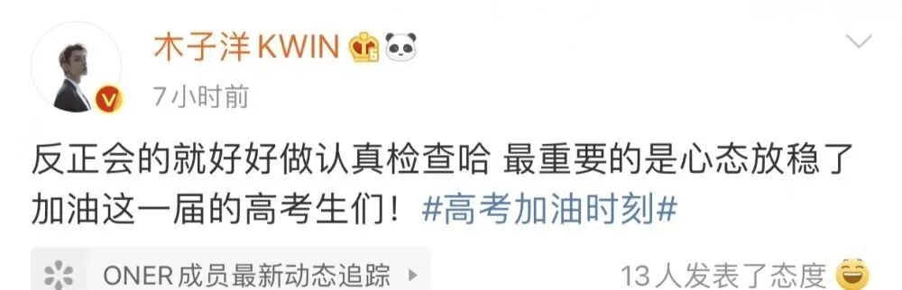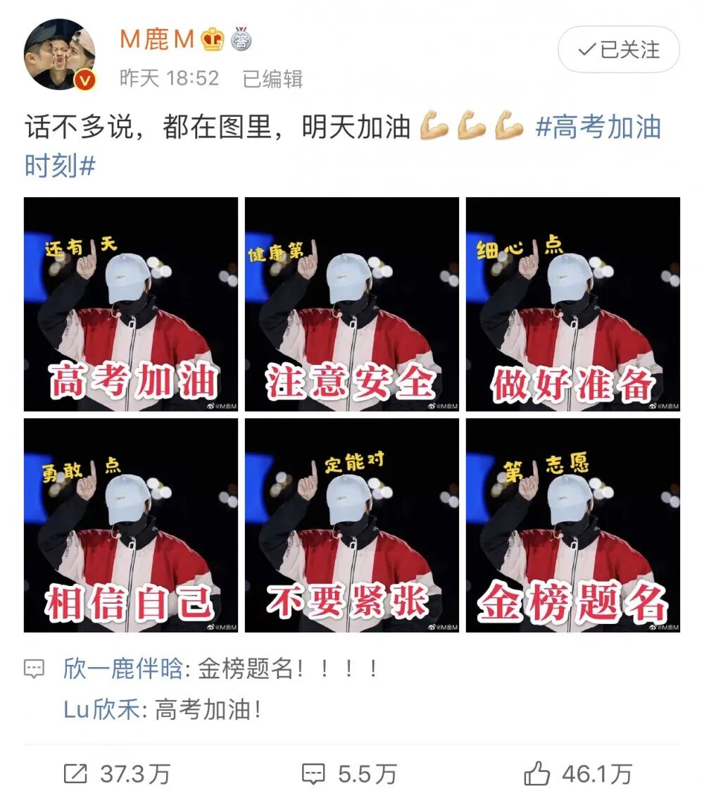 周深、任家萱、邓伦、林俊杰、吴亦凡、鹿晗为你加油,祝金榜题名! MusicRadio音乐之声 港台女星 2020-07-07 20:00:14 1703 创作不易,用心坚持,欢迎请BaGua喝几杯爱心咖啡!打赏并支持本文 打赏并删除本文 2020年全国统一高考今天正式开考全国卷、各省命题试卷作文题成为热点一起来看看吧▽▽▽向左滑看更多考题今天的考试已经结束明天继续加油吧!01周深不仅发挥搞笑功力讲笑话,还送上贴心的高考小贴士,真是又解压,又贴心呢!02再坚持坚持,只为不辜负自己。跟任家萱Selina一起调整调整状态,明天继续加油吧!03邓伦:高考是终点,亦是起点,希望你们轻松上阵,超常发挥,金榜题名,凯旋而归,青春无畏,高考加油!林俊杰、鹿晗、吴亦凡、迪丽热巴、王丽坤、李晨、木子洋等都通过微博为高考考生们加油!明星们隔空加油老师家长场外花式打气形成考场外的一道亮丽风景线明天继续加油哦!!! 创作不易,用心坚持,欢迎请BaGua喝几杯爱心咖啡!打赏并支持本文 打赏并删除本文 感谢您的支持鼓励,我会继续努力的!文章地址:用户邮箱:打赏金额:USDT 请输入数字点击”去打赏“,即可进行打赏支持本文章哦 selina About the Author MusicRadio音乐之声 功能介绍:中央人民广播电台第三套频率音乐之声 官方认证:中央人民广播电台 Related Posts 林俊杰《幸存者·如你》| 由我及你 解码平行时空 2020-10-20 18:00:36 周深、任家萱、邓伦、林俊杰、吴亦凡、鹿晗为你加油,祝金榜题名! 2020-07-07 20:00:14 TOP会客室 | 梁博《昼夜本色》:美就行,但别让我看到臭美的过程 2020-06-18 18:01:00 韦礼安,你到底为谁写了一首歌? 2020-04-30 18:40:11 SNH48:致每个在平凡中绽放光芒的你 2020-03-12 18:47:14 发表评论